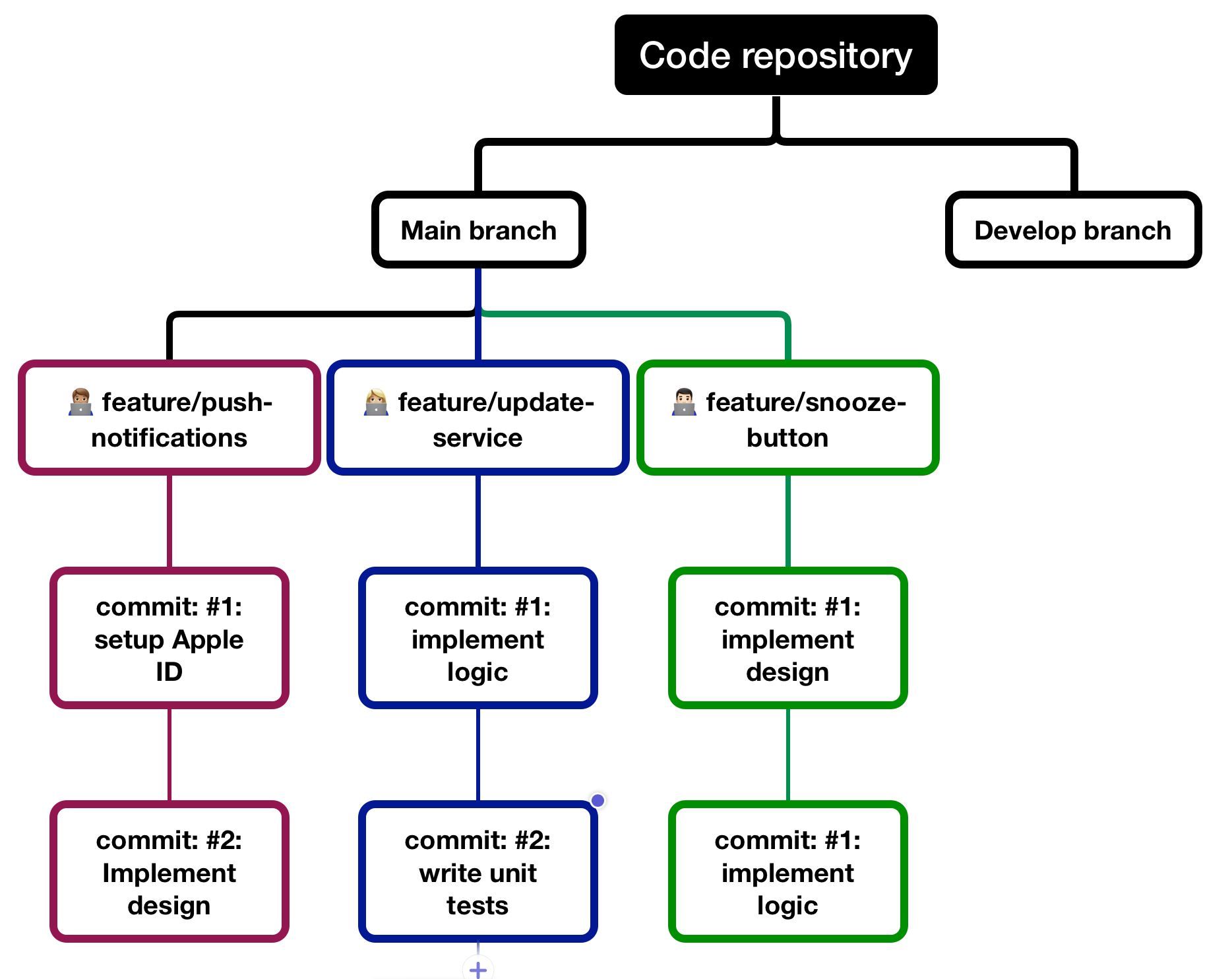 In the illustration above, you can see a stacked branch example visualized.