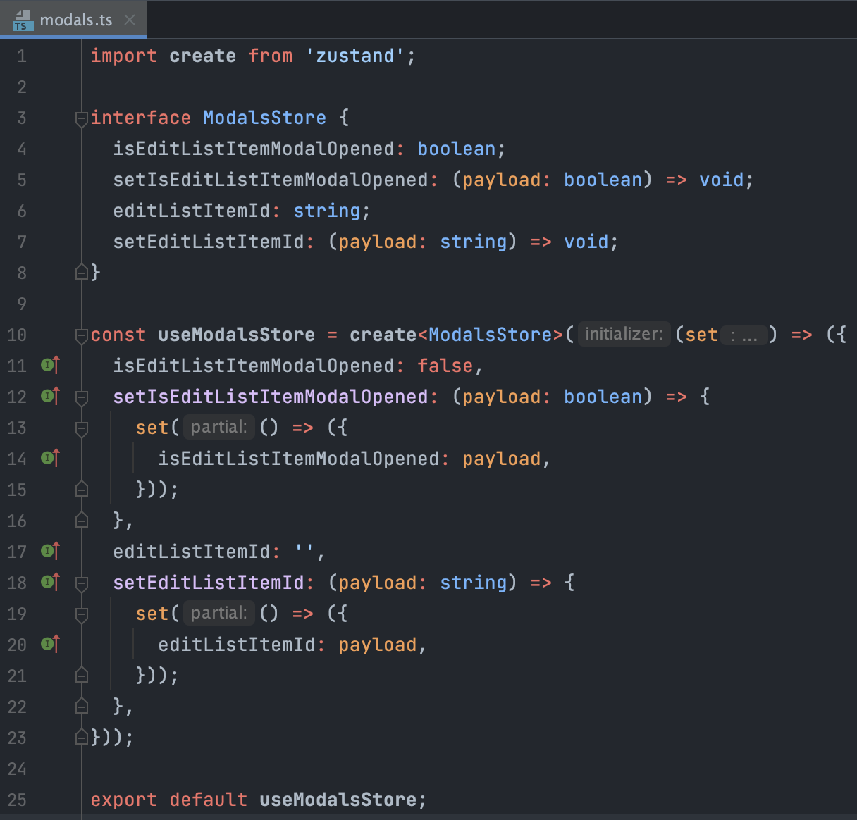 You can find this code at store/modals.ts