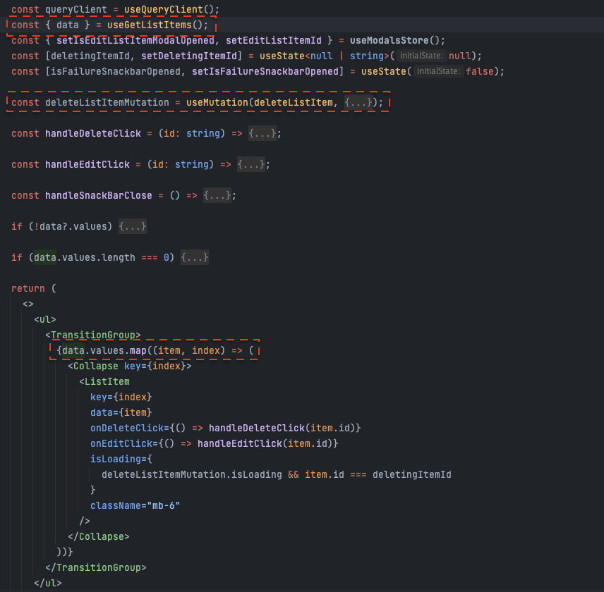 Side note: I find it helpful to abstract larger code blocks into custom hooks. This keeps the component file clean and focused on rendering.